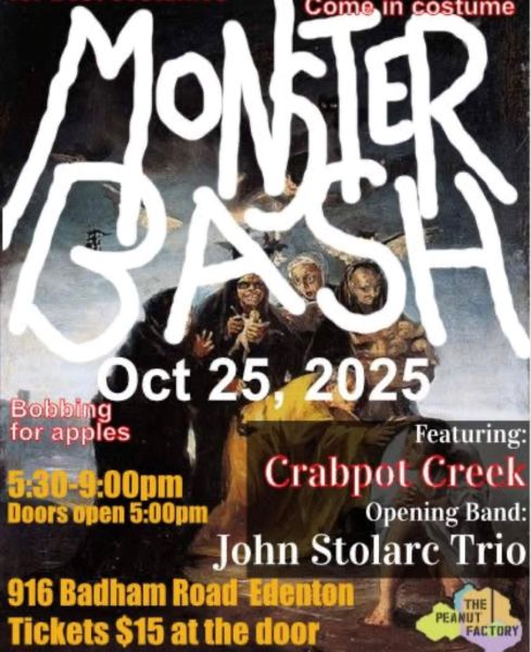 Attention all ghouls, ghosts, witches, warlocks, zombies and monsters in all shapes and sizes: Come hear CRABPOT CREEK for a Halloween MONSTER BASH, with the JOHN STOLARC TRIO opening the stage. Prizes for best costumes! Come bob for apples and dance around the witches’ cauldron. Enter a raffle, enjoy the bar and food truck.